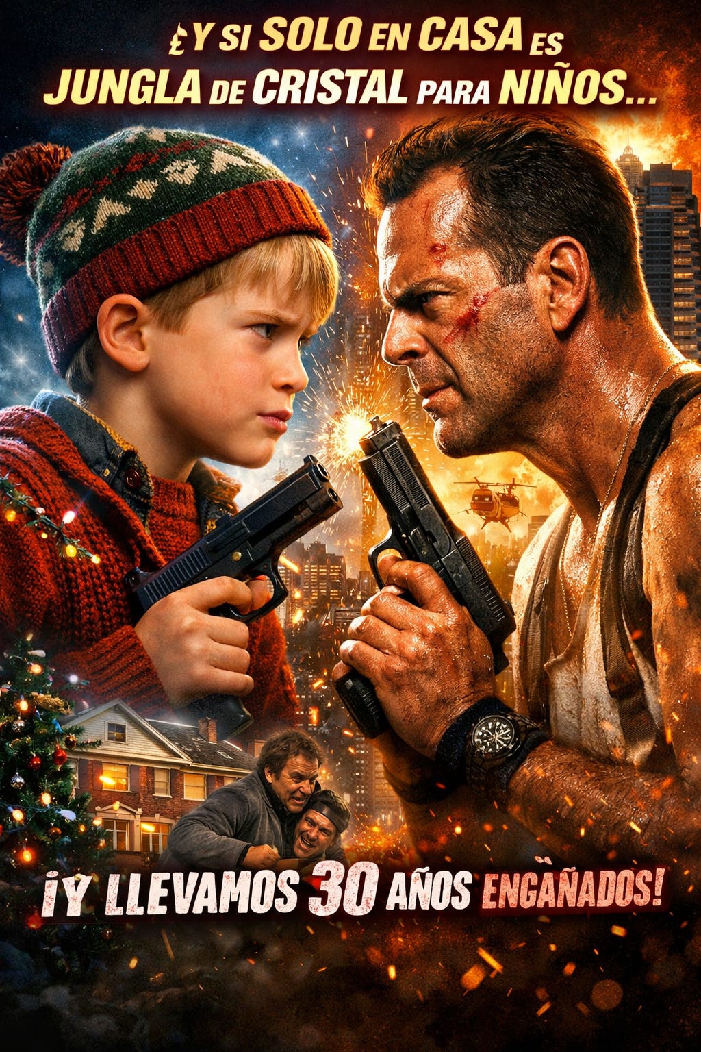 Pero espera, que esto no acaba aquí. Existe una teoría que aparece cada Navidad como el cuñado pesado, y dice que Solo en casa es básicamente el reboot infantil de Jungla de cristal. Y cuanto más lo piensas, más miedo da… porque tiene todo el sentido del mundo.